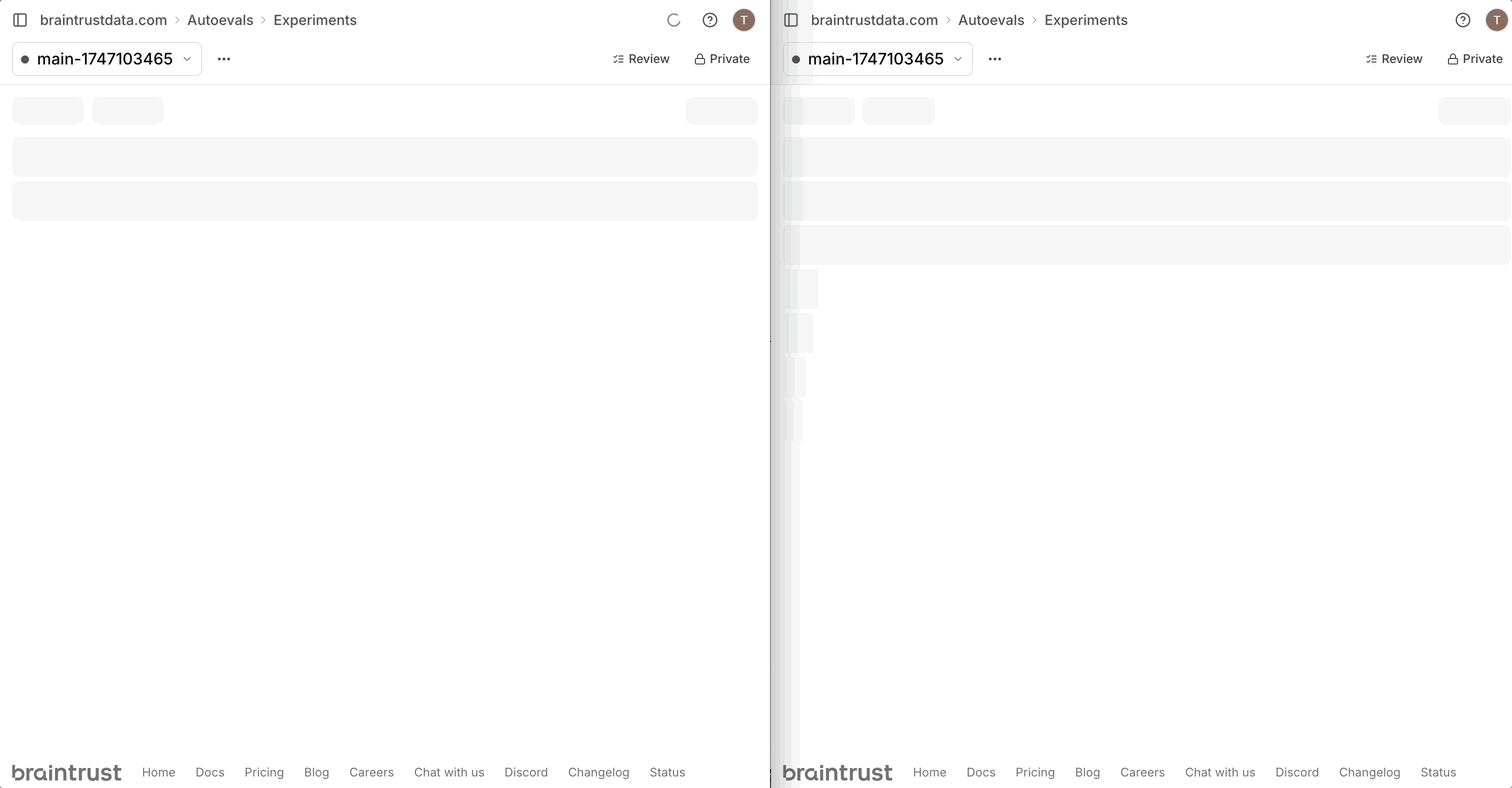 These performance upgrades extend beyond experiments. They are also available in log and dataset tables, for a consistently fast experience across Braintrust.